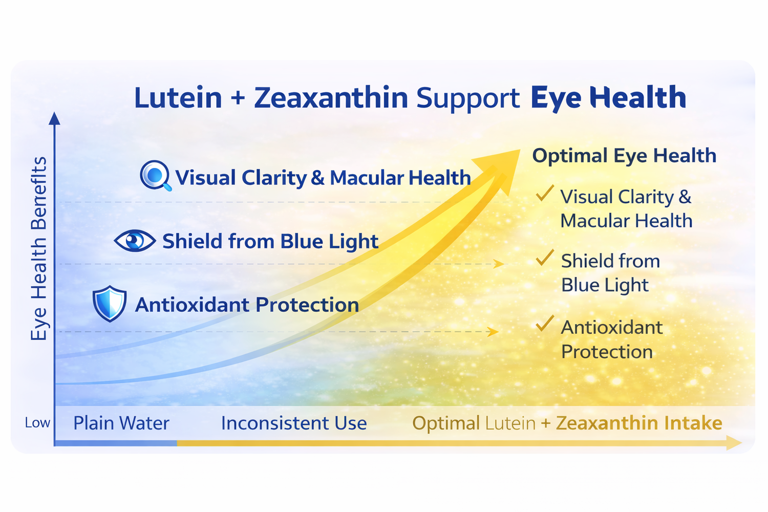 Consistent daily intake of lutein and zeaxanthin helps support visual clarity, macular health, and overall eye wellness. These nutrients help filter blue light from screens and provide antioxidant support that helps protect eye cells from everyday stress, helping your eyes perform comfortably throughout the day.